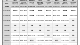 年末年始につきまして、各店にて営業時間短縮およびお休みを頂戴いたします。お客様にはご不便をおかけし恐縮いたしますが、ご理解ご協力のほど、どうぞお願い申し上げます。PDFでご覧になる場合はこちらをクリック。